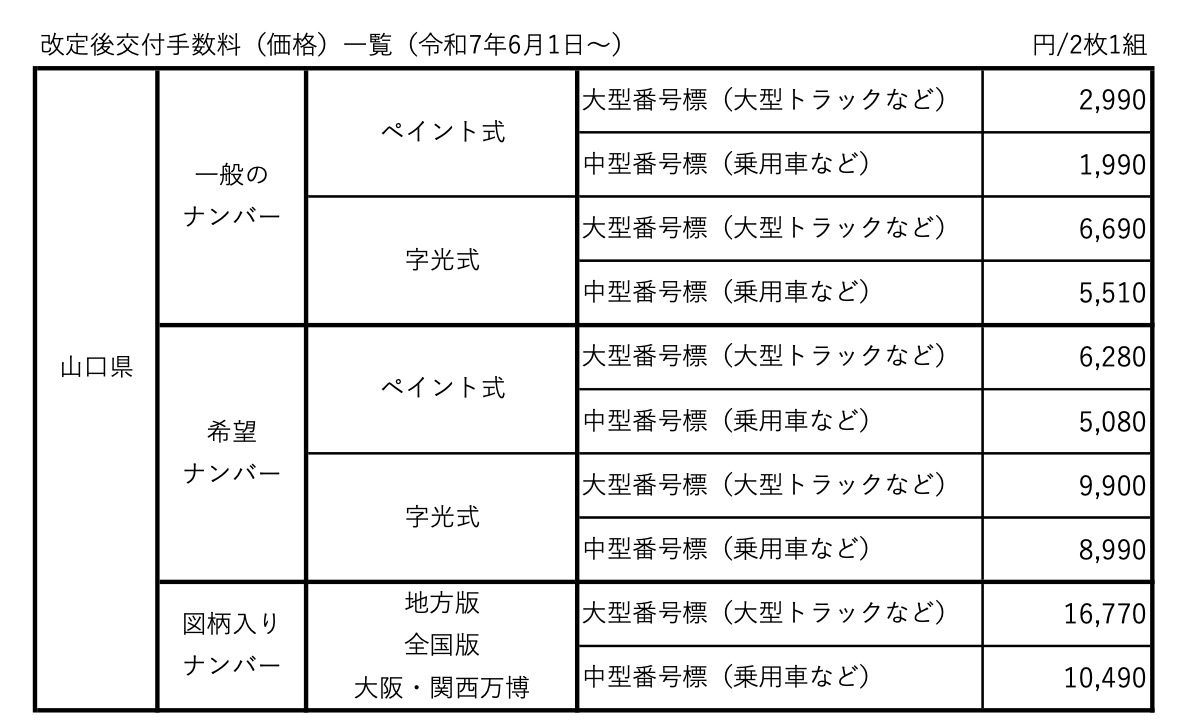 字光式ナンバー・希望ナンバーへ変更する場合、原則として平日に車を山口市の運輸支局へ持ち込む必要があります。
