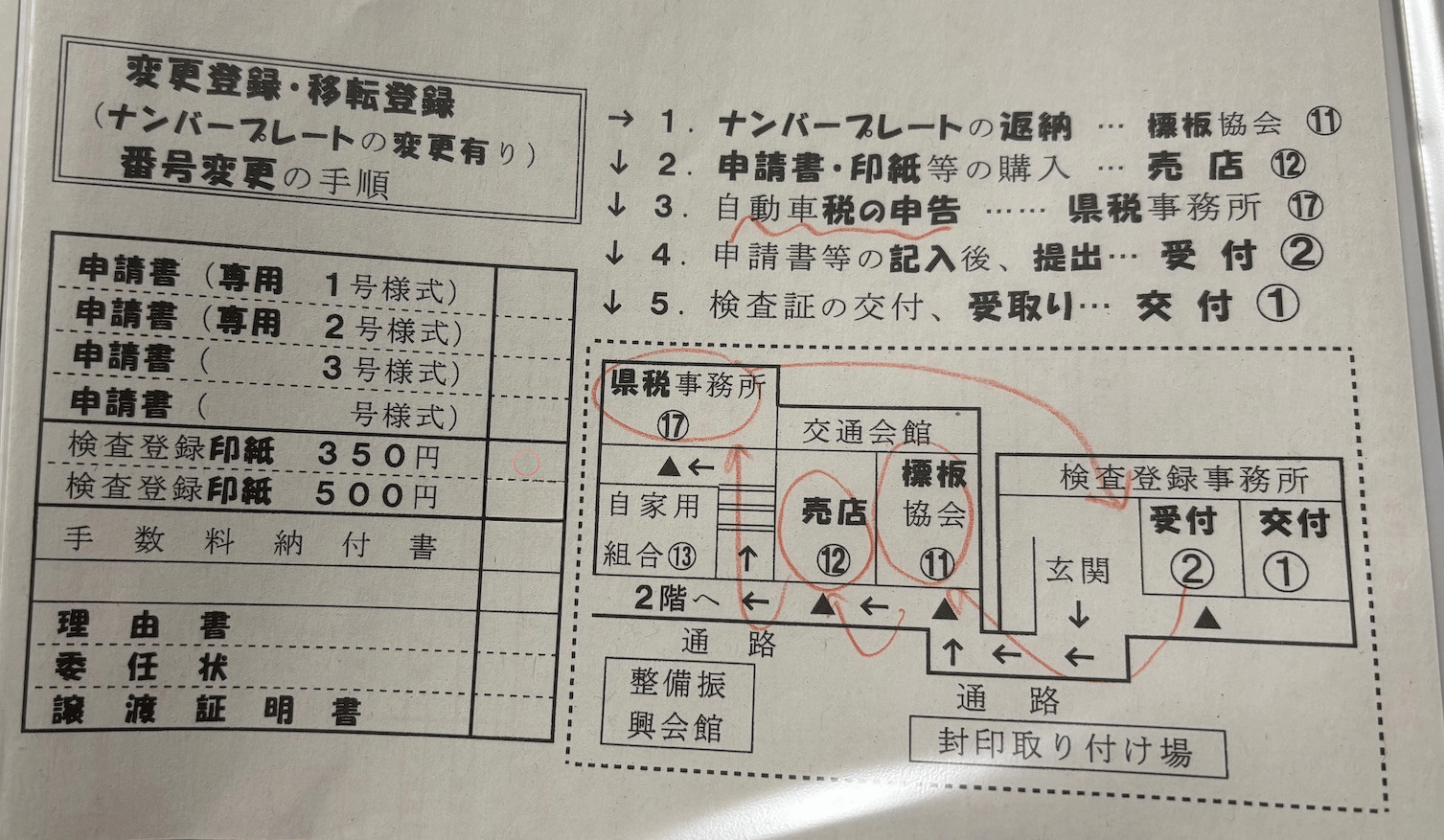 - 車検・登録窓口が分かれているため、初めての方は案内板の確認が必要
