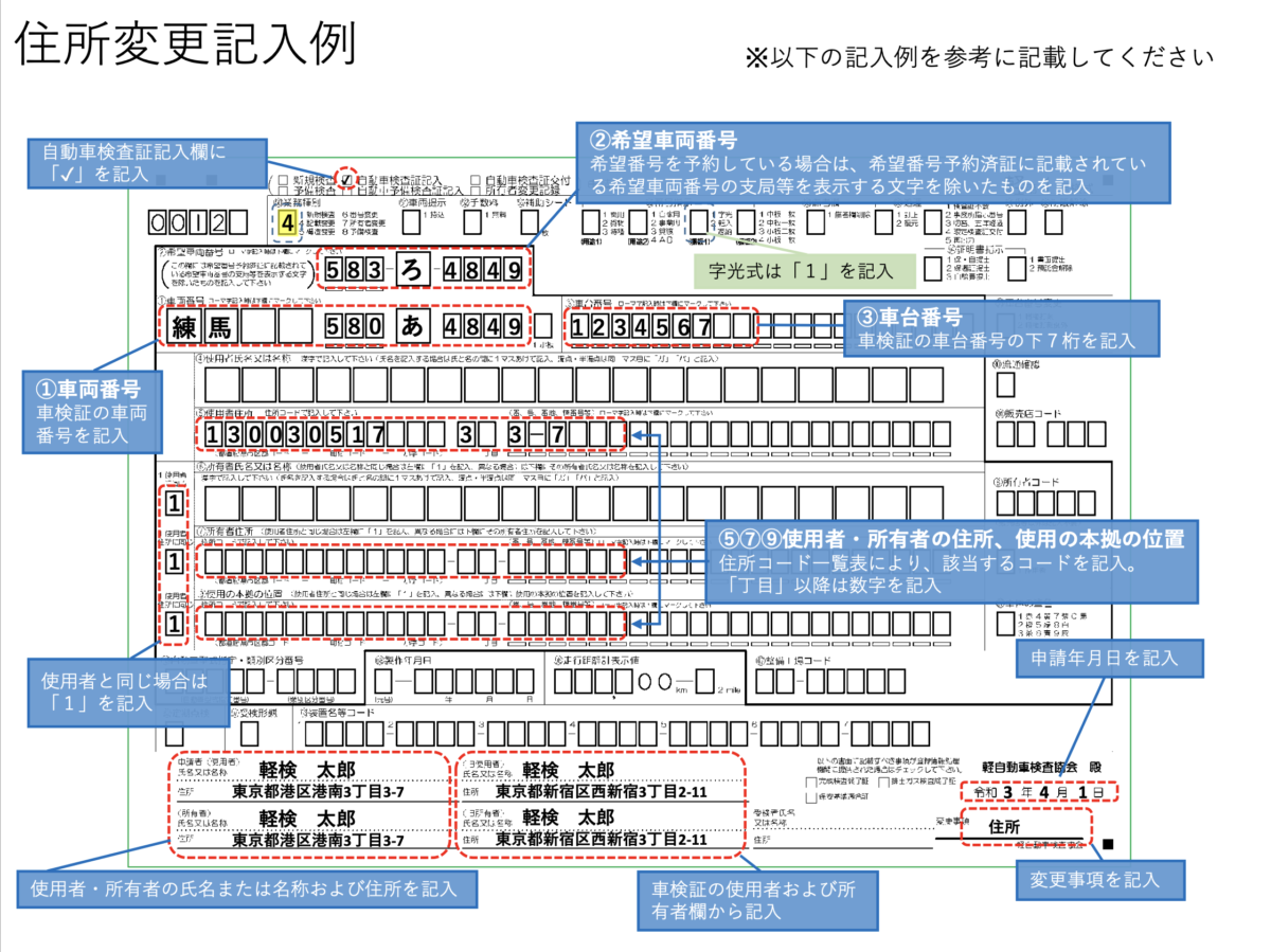 車検証や住民票などの証明書類を見ずに記入すると、正確な情報との誤記入が起こります。