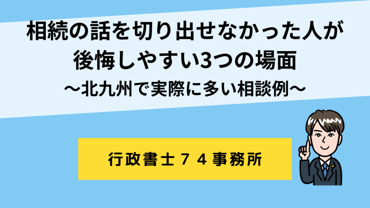 はじめに|相続の後悔は「知らなかった」より「話せなかった」から始まる 北九州市で相続のご相談を受けていると、次のような言葉を本当によく耳にします。 「元気だったので、相続の話なんてするのは失礼だと思っていました」「いずれ分かるだろうと、先...