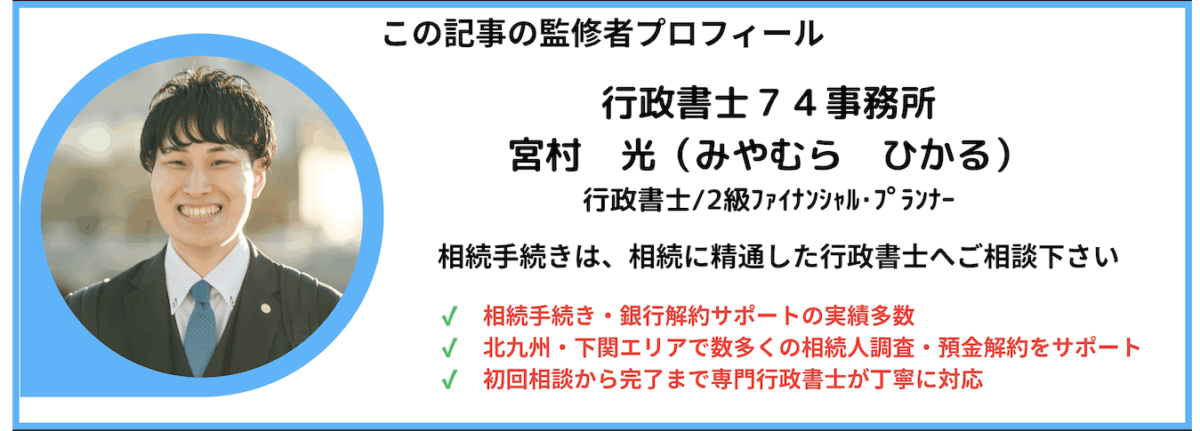 銀行相続専門の行政書士の宮村 光(みやむら ひかる)と申します。