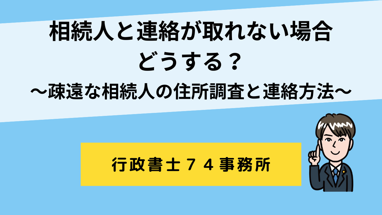 疎遠な相続人がいる場合でも、戸籍調査などを通じて住所を突き止め、連絡を行うことが可能な場合があります。