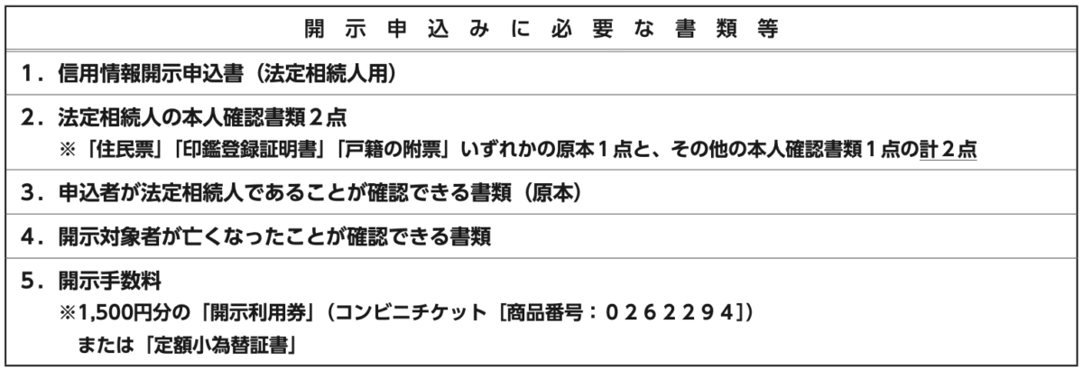 CICの手引き上、開示請求ができるのは法定相続人のみです。
