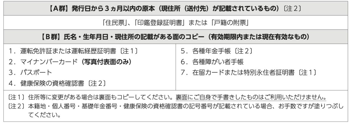 ②法定相続人の本人確認書類(2点)