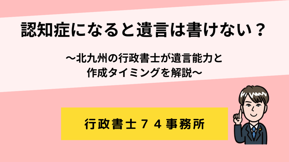 はじめに 「認知症になると遺言は書けなくなるのか」「まだ元気だが、今のうちに準備した方がいいのか」 このようなご相談は非常に多いです。 特に北九州でも、 親の判断能力が少し不安 将来の相続トラブルを防ぎたい 今作るべきか迷っている といったケー... -