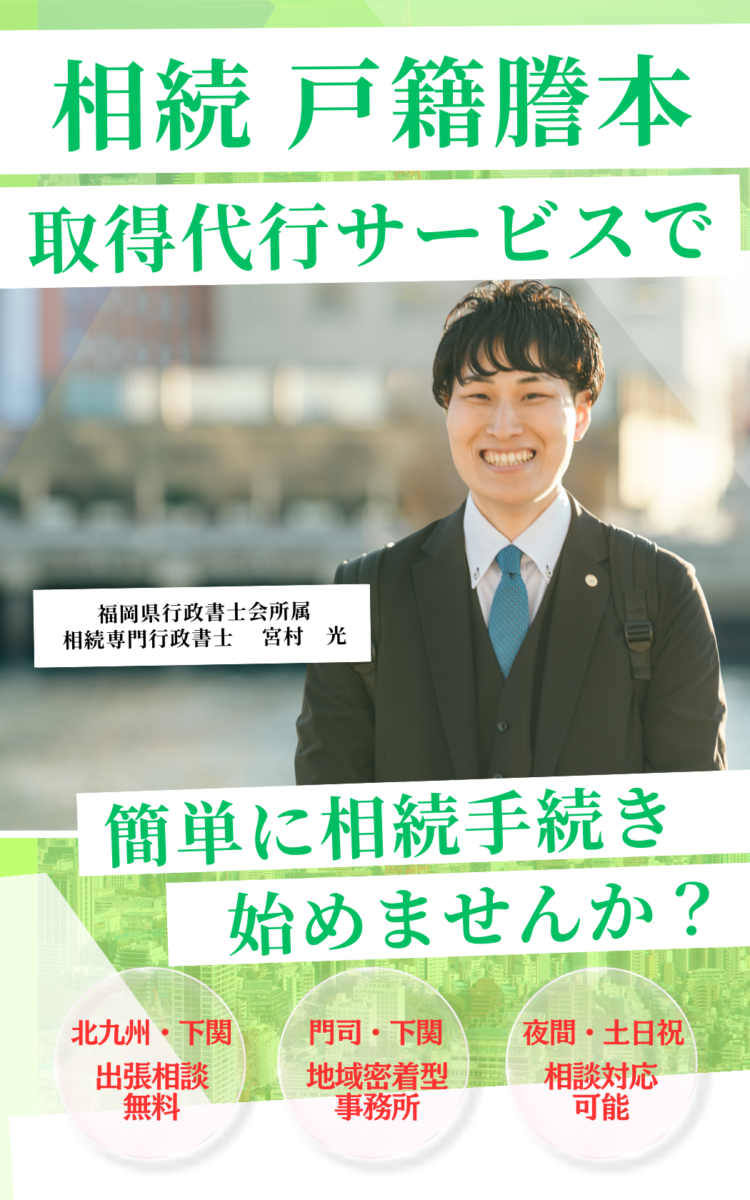 当事務所は、出張訪問型の行政書士として、北九州・下関エリアでの相談を無料で承ります。