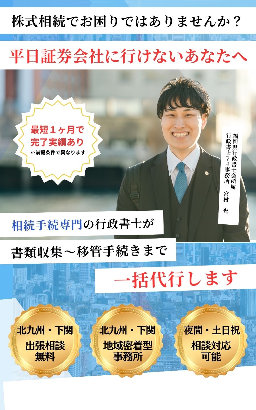 当事務所は、出張訪問型の行政書士として、北九州・下関エリアでの相談を無料で承ります。