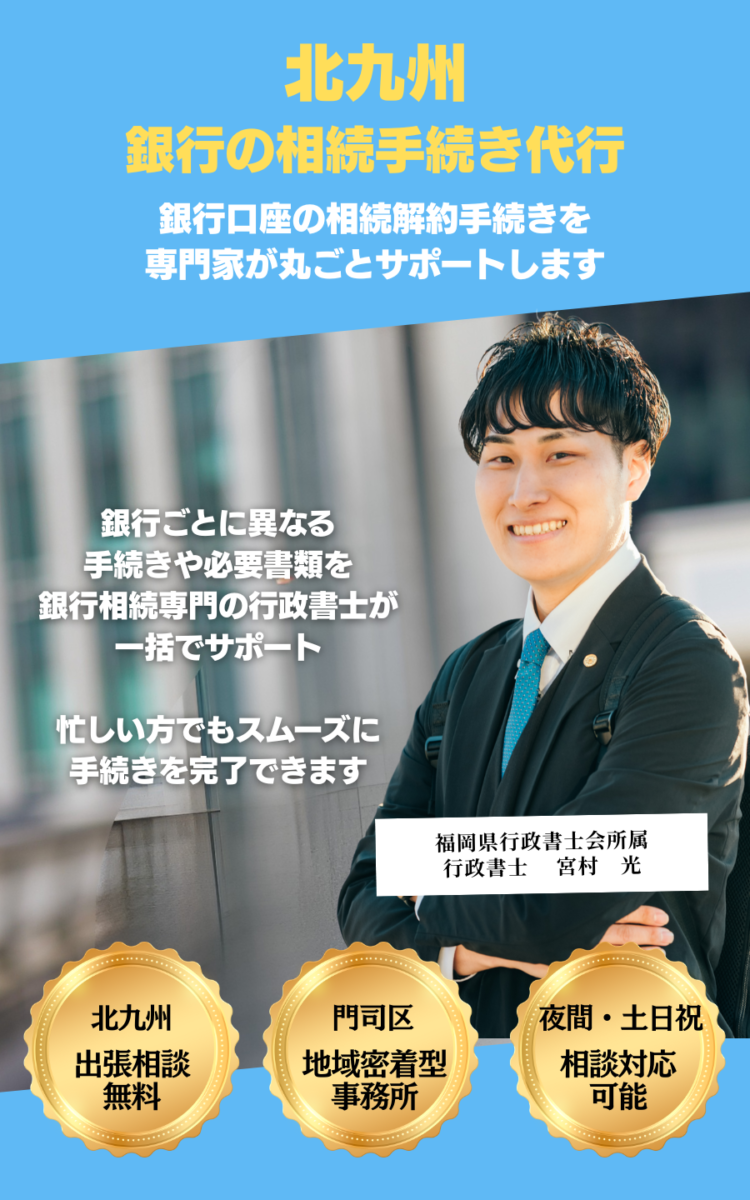行政書士74事務所は、門司で育った専門家が北九州エリアの金融機関の実務を熟知。銀行ごとの特徴を理解しているため、初めての方がつまづきやすいポイントを事前に回避し、最短ルートで手続きを進めることが可能です。